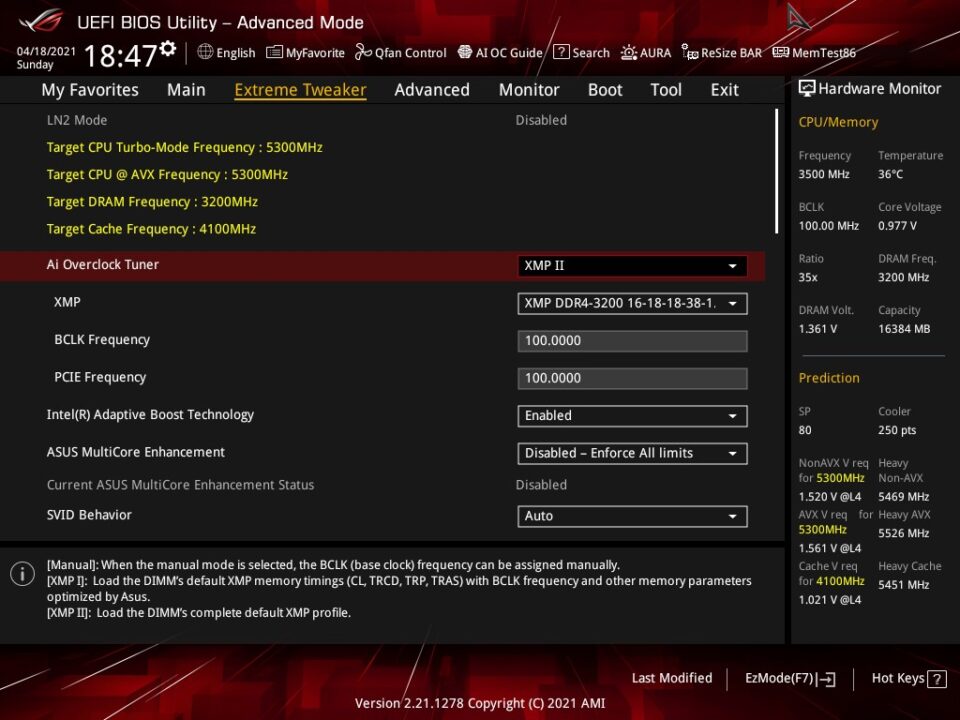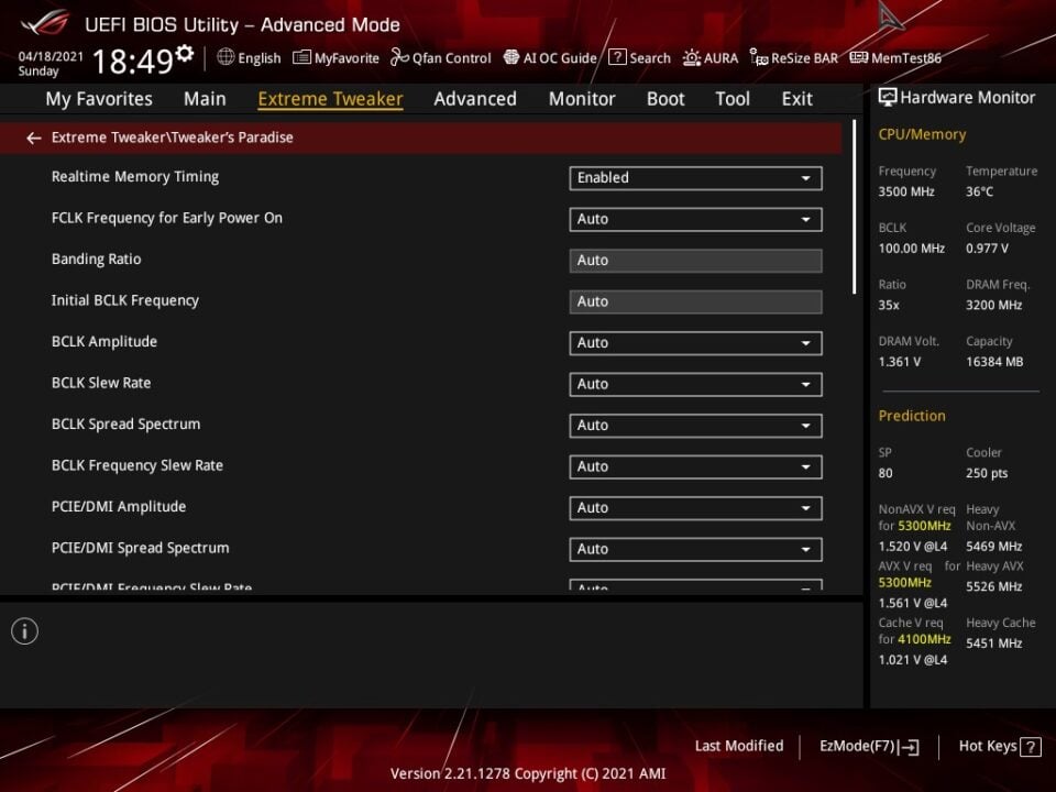 Every enthusiast and hardcore overclocker will feel at home with the UEFI of the ASUS ROG Maximus XIII Extreme. It covers all of the basics and adds more options like optimized XMP profiles, automatic thermal throttling and thresholds, and easy fan tuning via Q-Fan Control. Those who are inexperienced in tweaking can also leave the board to overclock itself through AI overclocking and a few restarts.