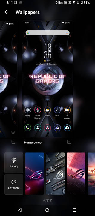 The only real difference on the ROG UI, in terms of functionality, is the Armoury Crate. Its shortcut is immediately placed at the middle of the bottom tray and lets you access some of the more interesting options and features on the smartphone.