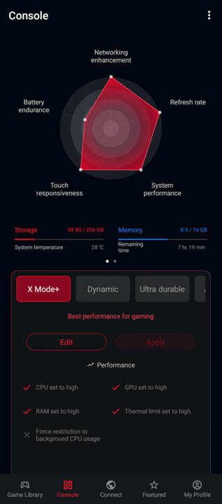 One of the highlights in the ROG Phone 5’s software suite is the Armoury Crate. Its icon is immediately noticeable in the bottom tray of the menu. It gets you access to some of the more interesting options of the device like RGB lighting, Game Management, hardware preferences, as well as switch to and from varying degrees of performance modes.