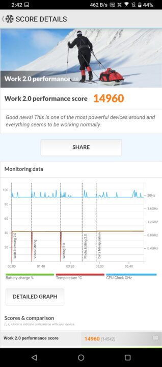 Numbers pumped out while the smartphone is running at X Mode is nothing short of spectacular. Previously challenging benchmarks like 3DMark Sling Shot Extreme just tapped out and maxed out the possible score. PCMark 2.0 reaches a score of nearly 15,000 while AnTuTu breaches easily breaches the 800,000 mark.