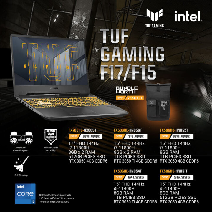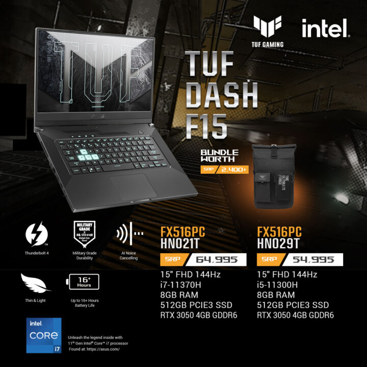 The ASUS TUF Gaming F17/15 and TUF Dash are now widely available in the market. All models of these notebooks will come with a TUF Gaming backpack for free. A total of 7 variants have arrived in the Philippines: