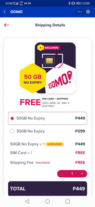 Those who already have a GOMO SIM can immediately take advantage of the 50GB promo. Don’t have a GOMO SIM yet? You can order your own SIM card via the GCash app as well. They are offering free shipping for their SIM cards until May 4, 2021 and it will come with the 50GB promo.