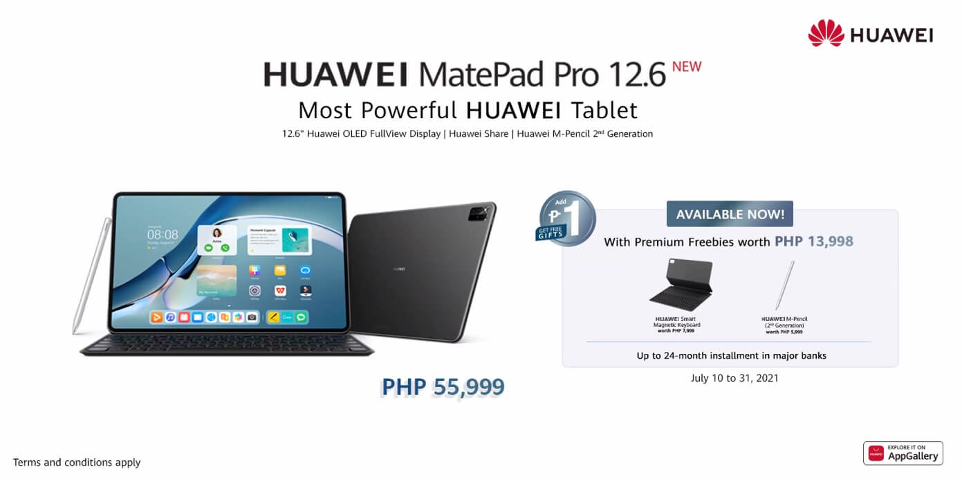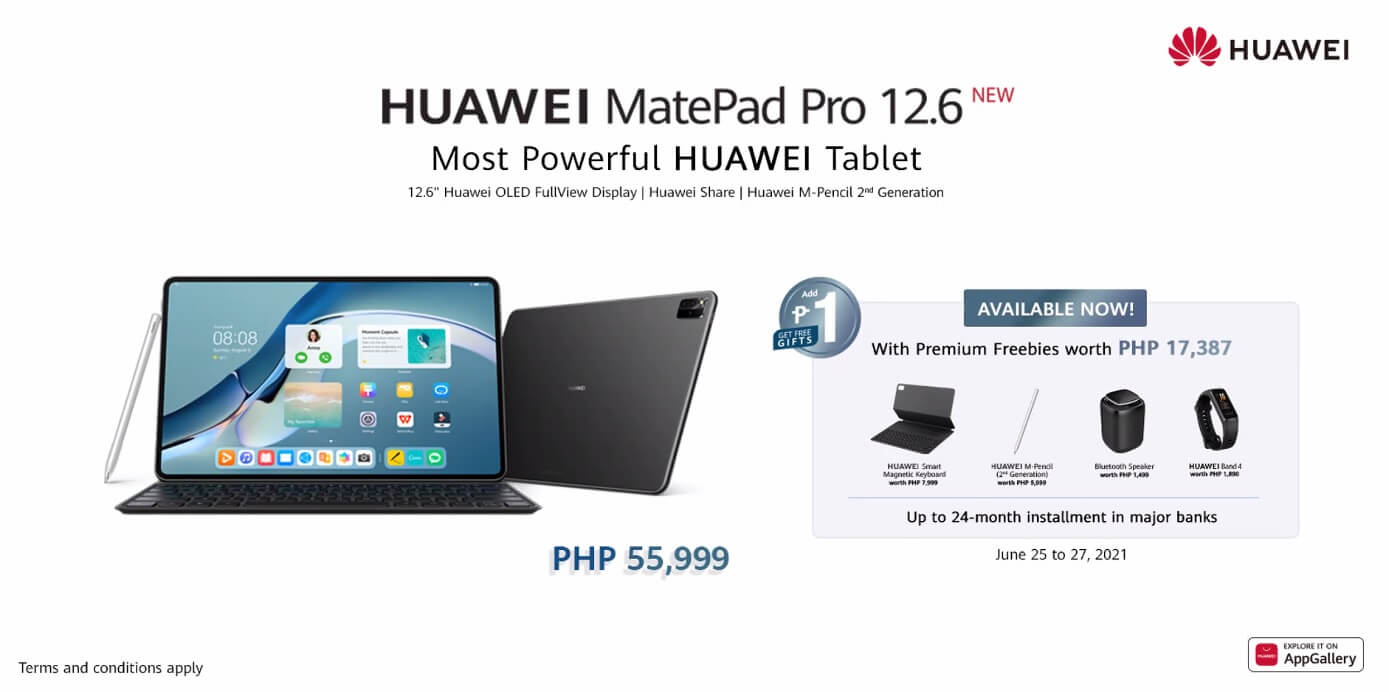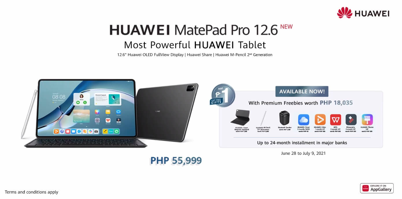 The Huawei MatePad Pro 12.6 is now available in the Philippines for PhP 55,999. Huawei is bundling several time-limited freebies by adding only Php 1.00 to your purchase: