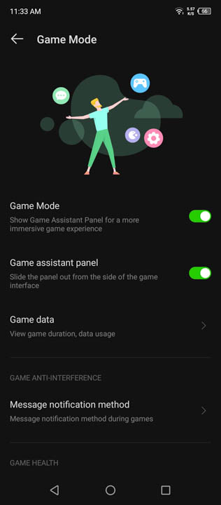 Game Mode available to allocate resources for games and a gaming assistant which can quickly disable notifications and even remap the volume buttons to other functions while playing games.