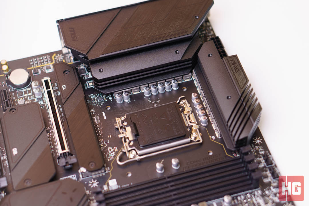 Intel Alder Lake-S can pull more than 240W of power even on stock, which is why MSI is using a 16+1+1 Duet Rail Power System and 70A Smart Power Stages. Its VRMs are cooled by a significant chunk of aluminum fins. There are two 8-pin EPS connectors at the top right to ensure the CPU gets a proper amount of power both on stock and while overclocked.
