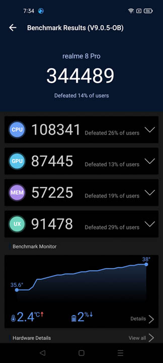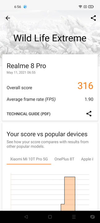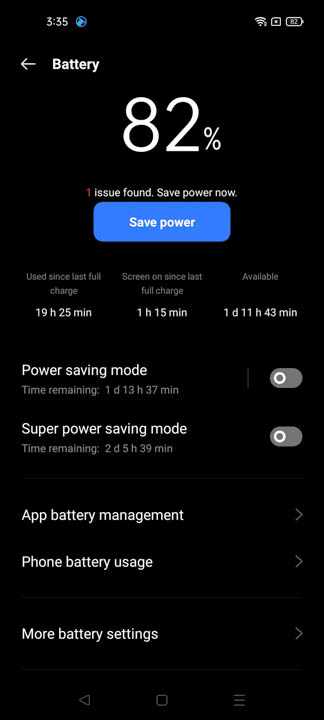 Powering the realme 8 Pro is a 4,500mAh battery, which can run the smartphone throughout the day without any issues under medium usage. Doing work, replying to emails, watching videos with its speakers, and playing the occasional bout of Call of Duty: Mobile throughout the day is no problem on the 8 Pro. PCMark Work 2.0 puts the smartphone at 16 hours 34 minutes of usage at medium volume and brightness.