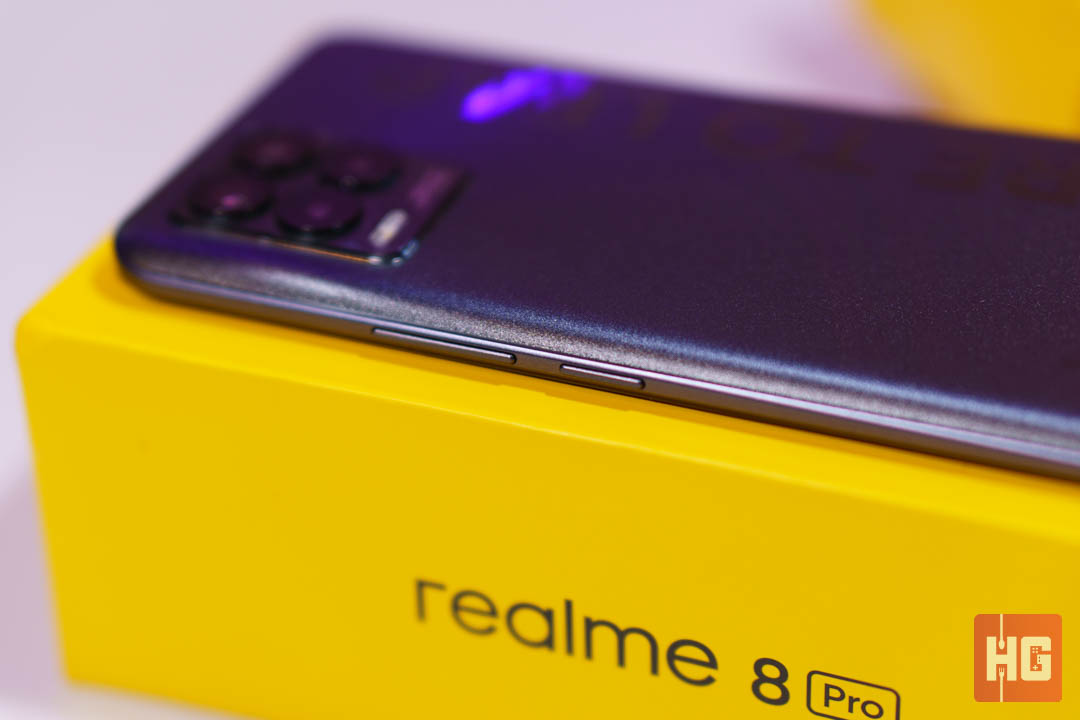 At the right-hand side of the realme 8 Pro are its volume rocker and power button, all of which offer a reasonable amount of tactility. Meanwhile, at the left-hand side is its triple-cut SIM tray that allows for two SIM cards and MicroSD card.