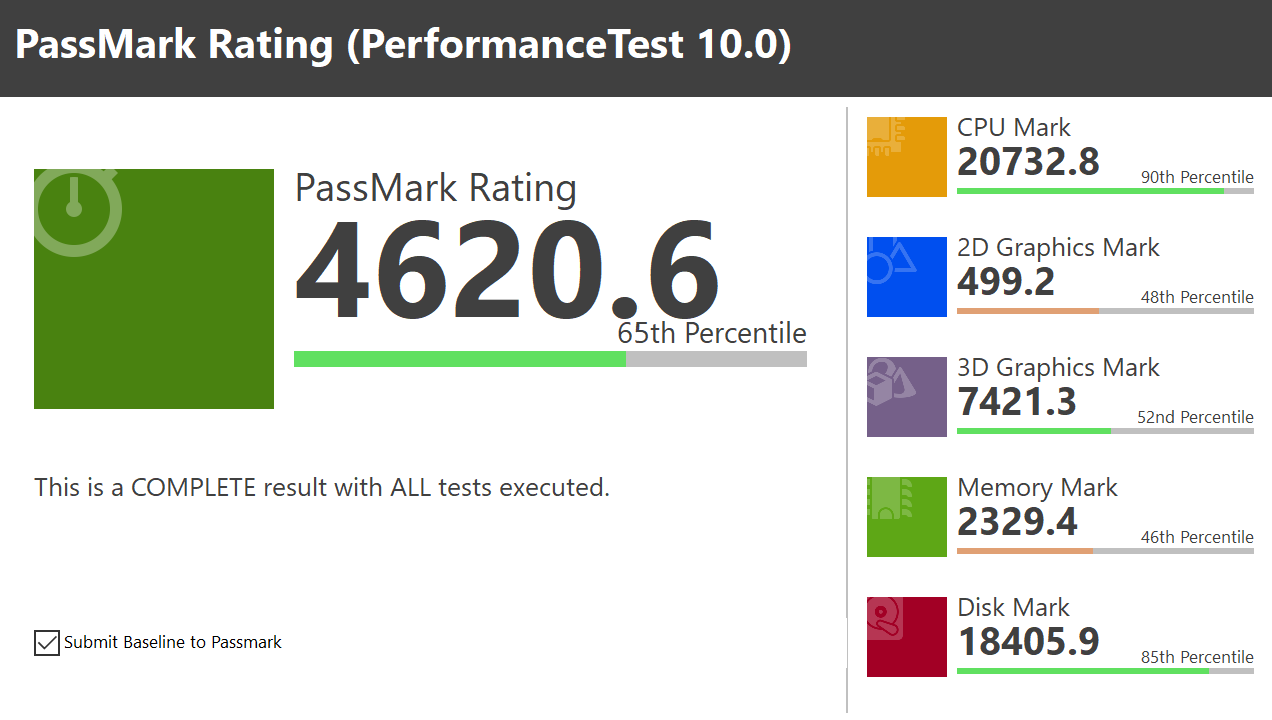 PassMark measures CPU, 2D & 3D GPU, Memory, and Disk speeds. Similar to Novabench, it gives you an aggregate score, giving you an idea on how your PC performs and how it ranks when compared to other computers around the world.
