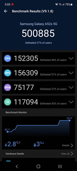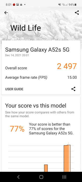 Under medium use composed of work, replying to emails, browsing the web, watching to videos, and occasionally playing games, the Galaxy A52s 5G is able to last around a day.