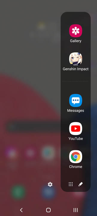 Bixby can be accessed by long pressing the power button while turning off the device has been changed to pressing the power button plus the volume down button. Users can access Panels or quick shortcuts by swiping in from the right-hand side. Panels can be customized with various apps to be quick launched.