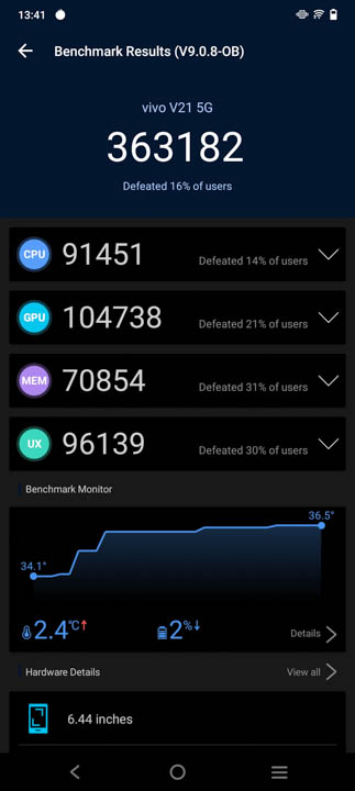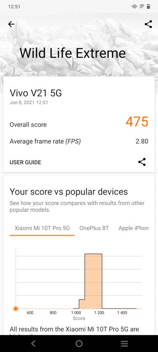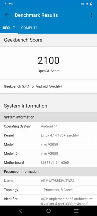 Despite the stale battery capacity, the V21 5G can still last throughout the day. Running a PCMark Work 2.0 battery test yielded nearly 20 hours of usage with medium brightness and volume. The test was running at only 60Hz so increasing the refresh rate to 90Hz may bring this figure down.