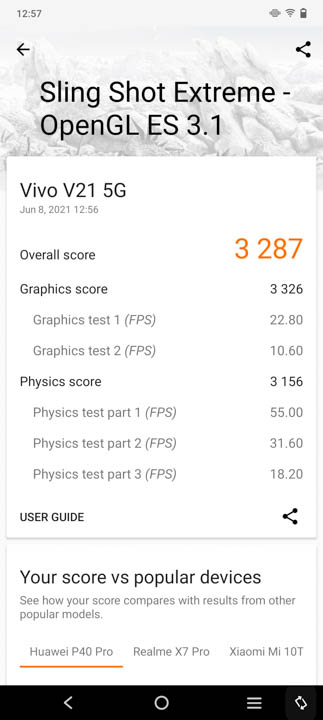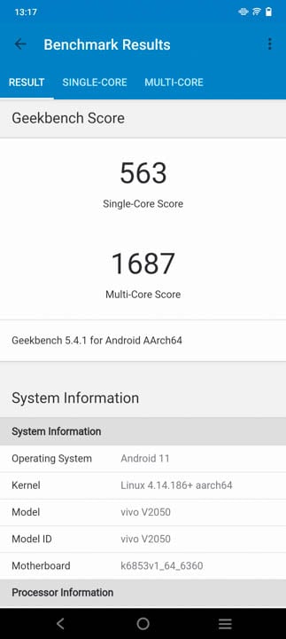 Performance of the V21 5G is serviceable for most applications. All programs were able to run without any kind of hitches. Numbers it produced on benchmarks are pretty decent as well. AnTuTu was able to reach around 360K, PCMark 2.0 at 7,057, and GeekBench 5.0 at 1,687 and 563 at single-core and multi-core scores, respectively.